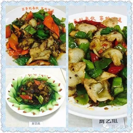此次厨艺技能PK主要要求我们厨师要在规定的时间内做五道饭堂最具代表性的菜品:青椒回锅肉、白切鸡、酸辣土豆丝、酸菜鱼和香酥鸭。除素菜由我们阿姨切配外,所有的主菜均有参赛厨师自行切配,切配用时包含于参赛用时,以下是我们参赛作品中部分出彩的菜品: